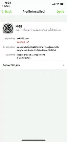 - ไปที่การตั้งค่า -> ทั่วไป -> การจัดการอุปกรณ์